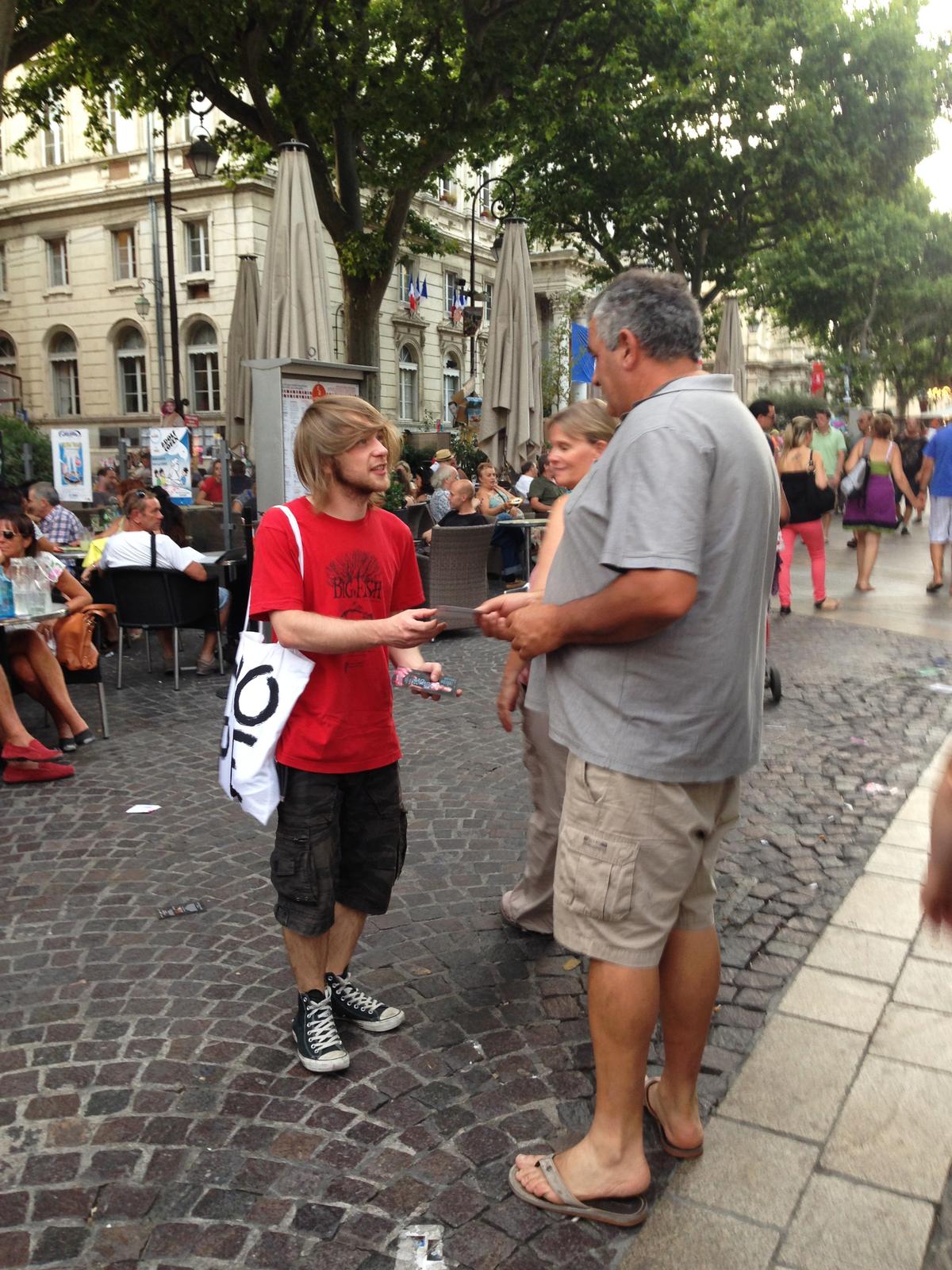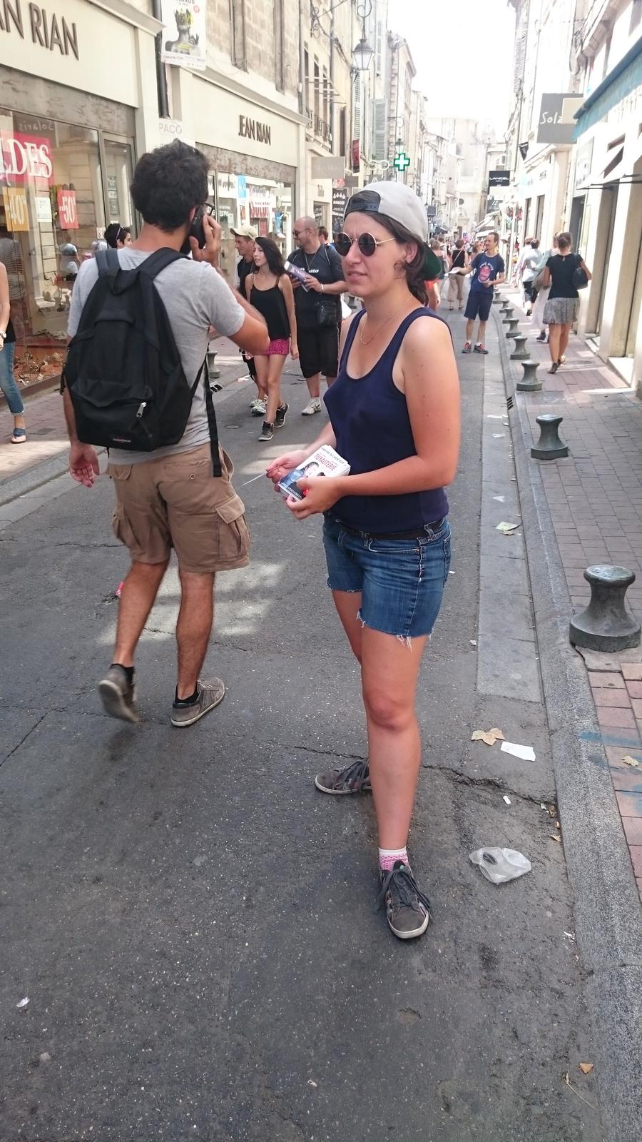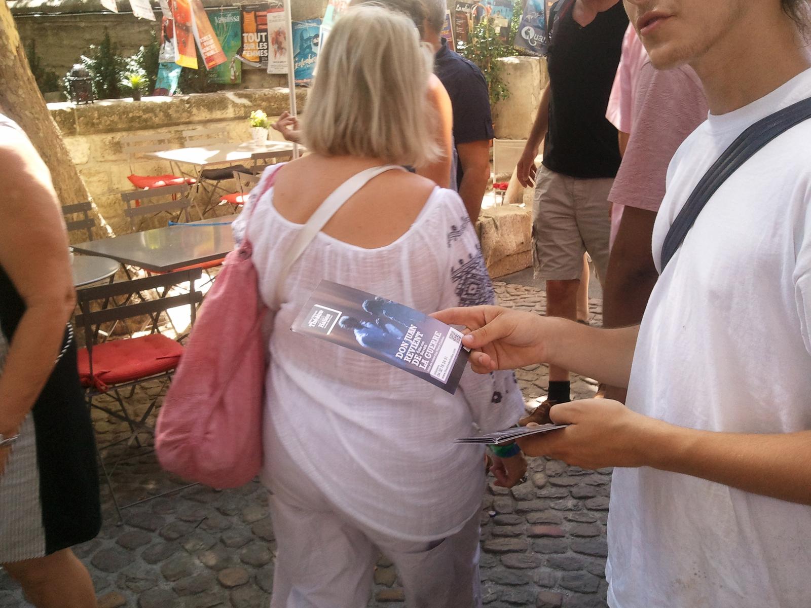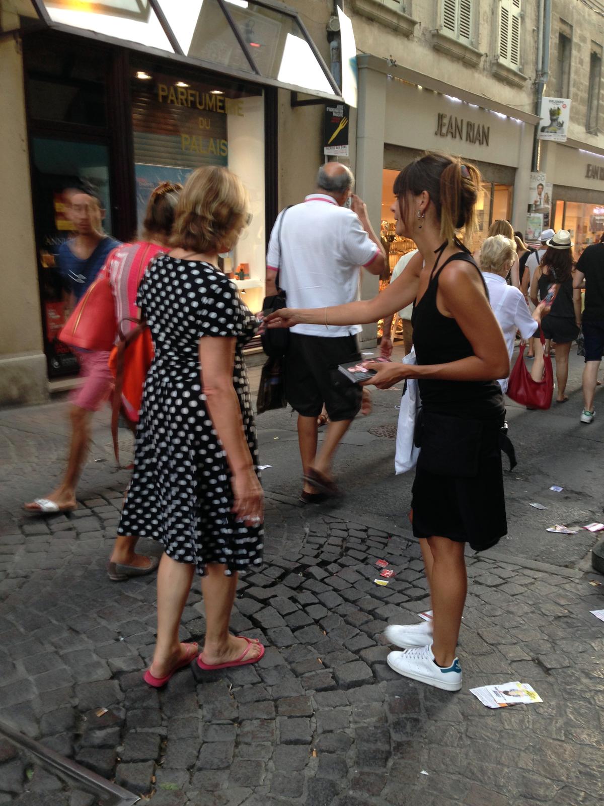 Distribution de flyers au Festival d’Avignon